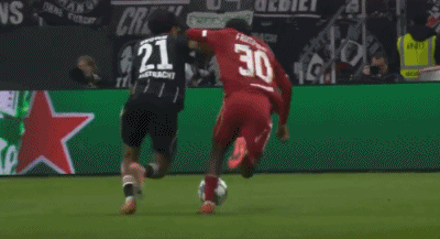第35分鐘,?;倏朔磽魡蔚镀崎T(mén),利物浦1-1扳平法蘭克福