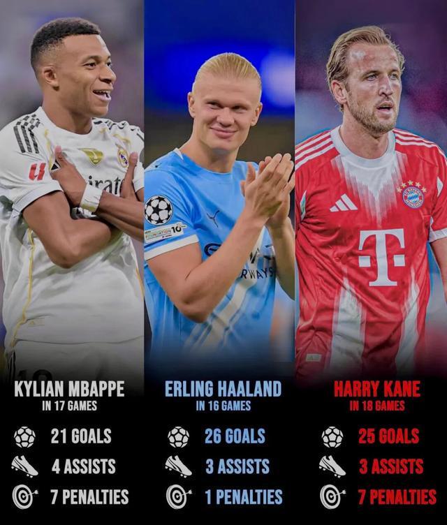 姆巴佩在西甲(13球)也領先第2名阿爾瓦雷斯多達5球,與哈蘭德和凱恩的斷層式領先優(yōu)勢相當。目前,三大神鋒的瘋狂表現(xiàn),也讓本賽季歐洲金靴獎的競爭格外激烈。