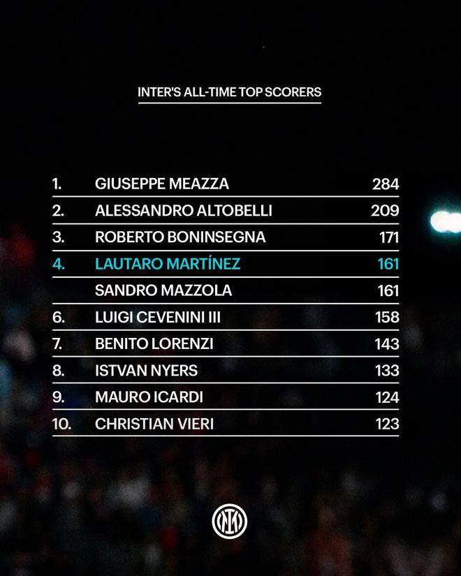 此役主場對陣?yán)R奧,勞塔羅-馬丁內(nèi)斯在上半場打入一球,至此,勞塔羅-馬丁內(nèi)斯國米生涯各項賽事349次出場已打入161球,這使得他追平馬佐拉,升至國米隊史射手榜第四位,僅次于梅阿查(284球)、阿爾托貝利(209球)和羅伯托-博寧塞尼亞(171球)。